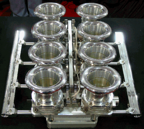 onto m/c billet alum. ram tubes/velocity stack tops.