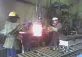 Steve & Tom pouring magnesium into sand moulds.