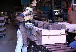 sand moulds and pouring aluminium.